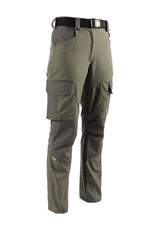 - Dámský model je možné ušít na objednávku. Byl navržen tak, aby se dokonale přizpůsobil dámské postavě. Jemně upravené estetické detaily zahrnují zadní kapsy bez klopy pro elegantnější vzhled a jiný tvar předních kapes, které respektují ženskou siluetu, přičemž boční kapsy zůstaly zachovány pro maximální úložný prostor. Pohodlí při nošení zvyšuje elastický opasek, který se přizpůsobí pasu.