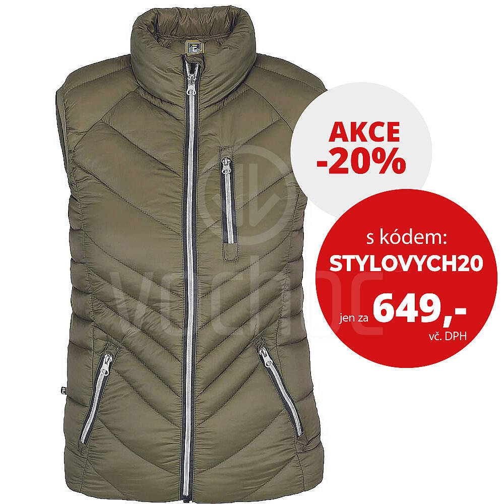 Dámská zateplená vesta se zapínáním na zip, s dvěma bočními kapsami na zip a jednou náprsní kapsou na zip. Díky použitému materiálu je vesta velmi lehká a příjemná na nošení.