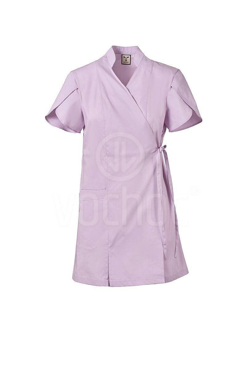 Elegantní a pohodlný dámský plášť s krátkým rukávem v moderním tulipánovém střihu a se šálovým límcem. Je vyroben z kvalitní směsi bavlněného popelínu, polyesteru a vlákna Lycra® T400®, která zajišťuje výjimečnou pružnost, tvarovou stálost a vysokou prodyšnost i při celodenním nošení.