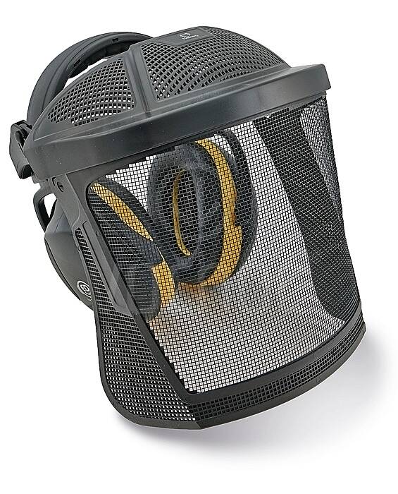 Kombinace náhlavního systému Hellberg s drátěným obličejovým štítem z nerezové oceli a sluchátky ED 2H Ear Defender. Maximální komfort a ochrana pro uživatele, kteří nepotřebují zároveň ochranu hlavy. Sluchátka splňují normu EN 352-1: 2002.