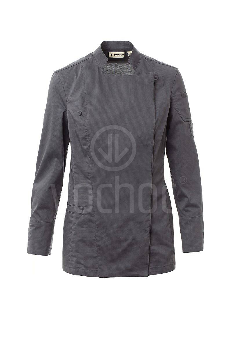 Dámský kuchařský rondon se stojáčkem je vyroben z odolného bavlněného ripstopu s příměsí Lycry® T400®, která zajišťuje výjimečnou elasticitu, tvarovou stálost a vysokou prodyšnost. Pohodlí při celodenním nošení podporují prodyšné síťované panely na zádech a v podpaží, které efektivně odvádějí teplo a zvyšují cirkulaci vzduchu.