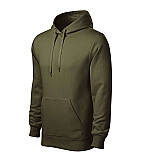 Pánská mikina s rovným střihem a bočními švy. Kapuce s podšívkou na stažení šňůrkou, kapsa ve stylu klokanky, dolní lem a manžety z žebrového úpletu.
