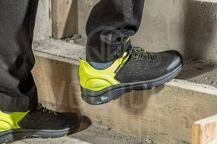 Pracovní polobotky SAUTEN nabízejí optimální spojení nízké hmotnosti, pevnosti a moderního vzhledu. Použité mikrovlákno spolu se síťovinou zajišťuje vynikající cirkulaci vzduchu a komfort při používání. Viditelnost zvyšuje jejich jedinečná hi-vis černo-žlutá barevnost s reflexními prvky. Jsou velmi vhodné pro pracovníky ve skladech a logistice.