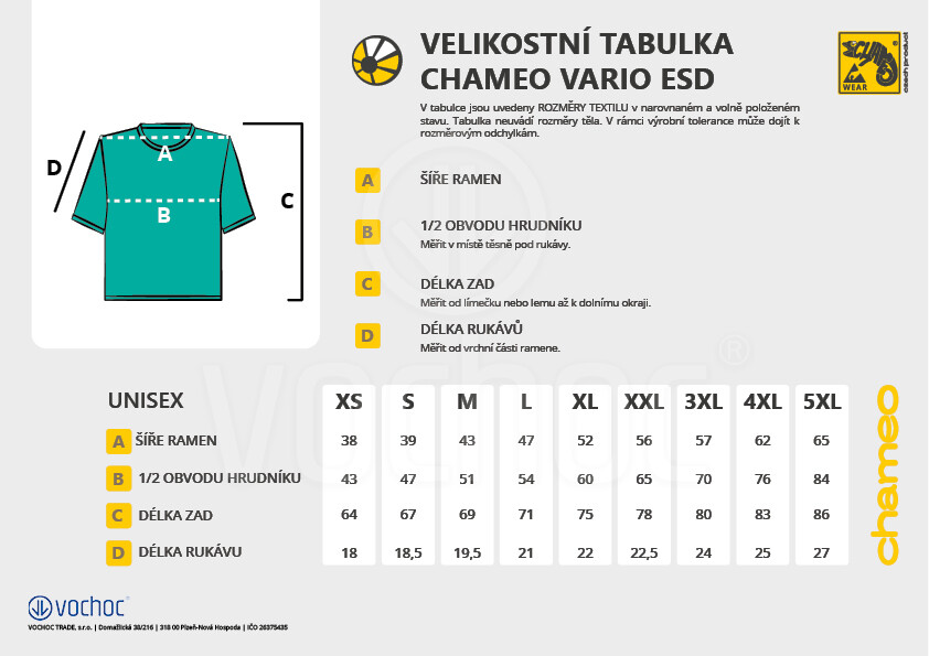 Lze kombinovat s ESD mikinami CHAMEO a ESD polokošilemi CHAMEO ve stejných barevných kombinacích.
