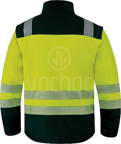 Výstražná softshellová bunda s odepínacími rukávy a s vysokou viditelností je navržena pro bezpečnou práci v prostředí se sníženou viditelností i za nepříznivých podmínek. Díky moderním materiálům a promyšlenému střihu poskytuje optimální kombinaci ochrany, pohodlí a flexibility. Bunda splňuje požadavky třídy 2 pro vysokou viditelnost a je vybavena segmentovými reflexními pásy, které zajišťují lepší viditelnost při zachování maximální volnosti pohybu. Vyšší límec chrání krk před větrem a chladem. Praktickou výhodou jsou odnímatelné rukávy, díky nimž lze bundu snadno přeměnit na vestu a přizpůsobit ji aktuálním pracovním podmínkám. Materiál: Softshell - 96% recyklovaný polyester 4% recyklovaný elastan - 2 laminované vrstvy, 280 g/m²