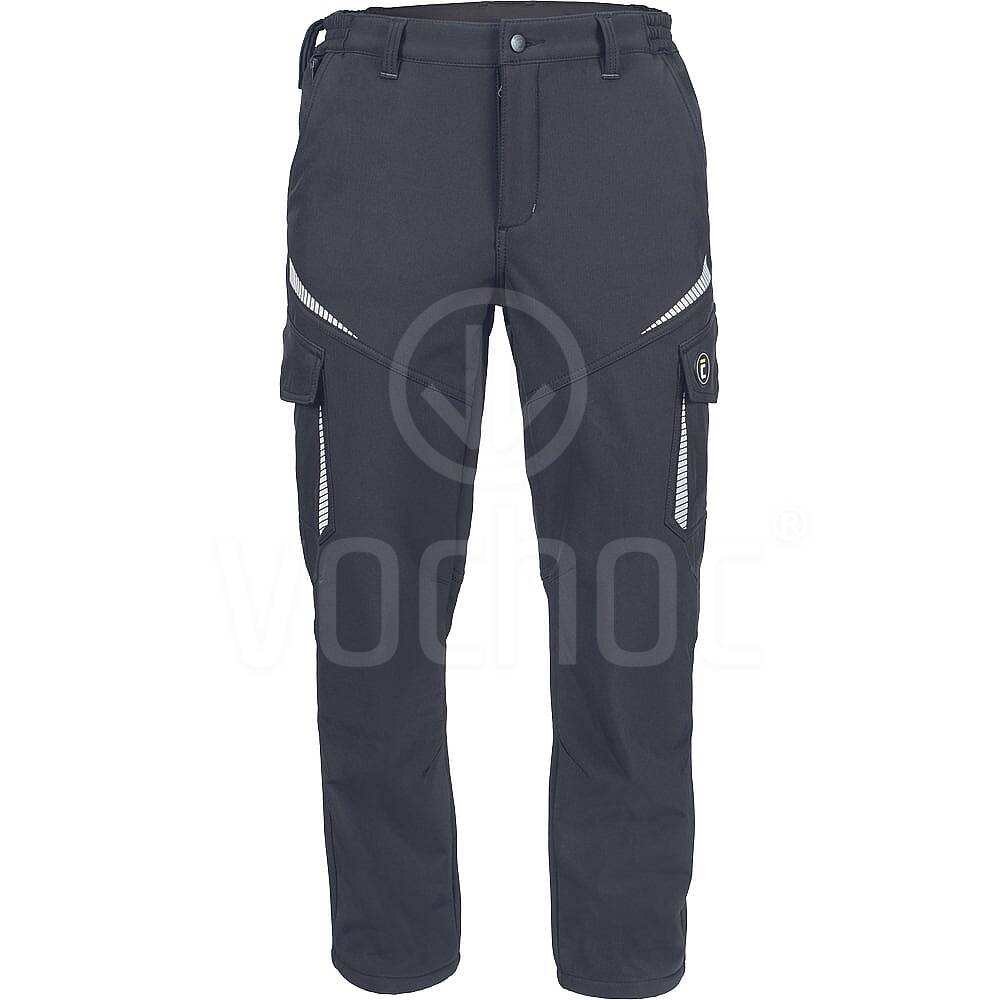 Zimní softshellové zateplené kalhoty s elastickým pasem a reflexní prvky v oblasti kolen a na zadní straně nohavic. Kalhoty mají dvě boční kapsy, dvě zadní kapsy s klopami na suchý zip a dvě stehenní kapsy s klopou na suchý zip. Prodloužená délka nohavice je 5 cm.